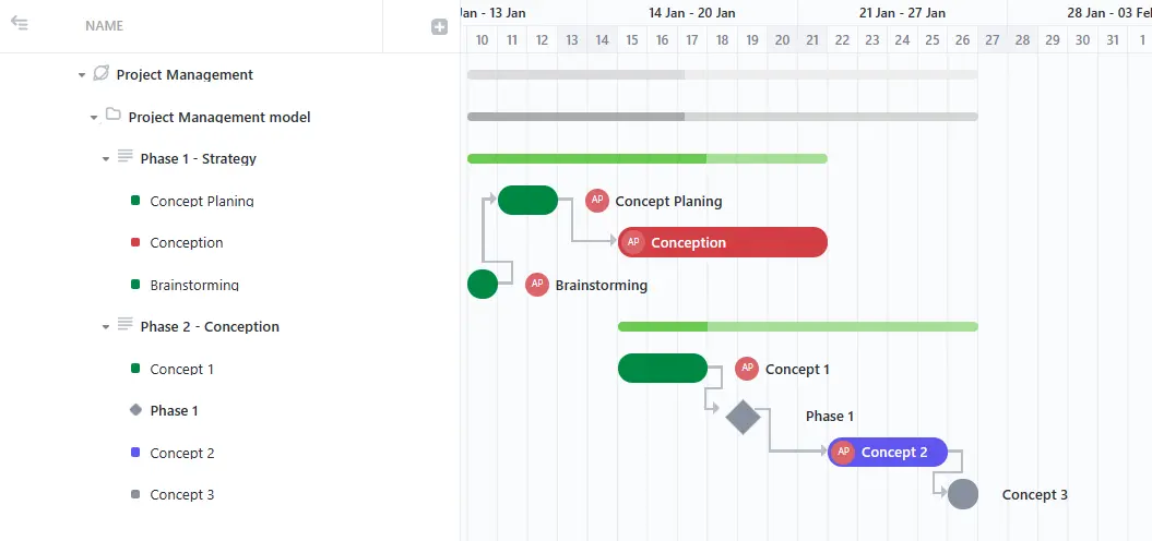 - Automated processes: When dragging a task with dependencies, subsequent tasks are automatically rescheduled for efficient project management.