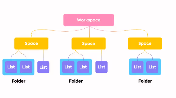 Spaces: These could represent different departments, clients, or major project categories. For instance, you might have a Space for "Marketing" and another for "Operations"