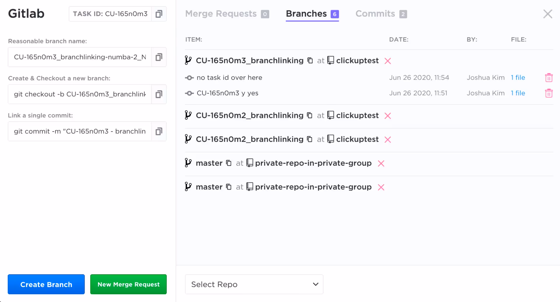 You can select which GitLab repositories to bring into your ClickUp account.